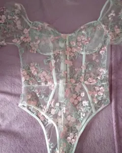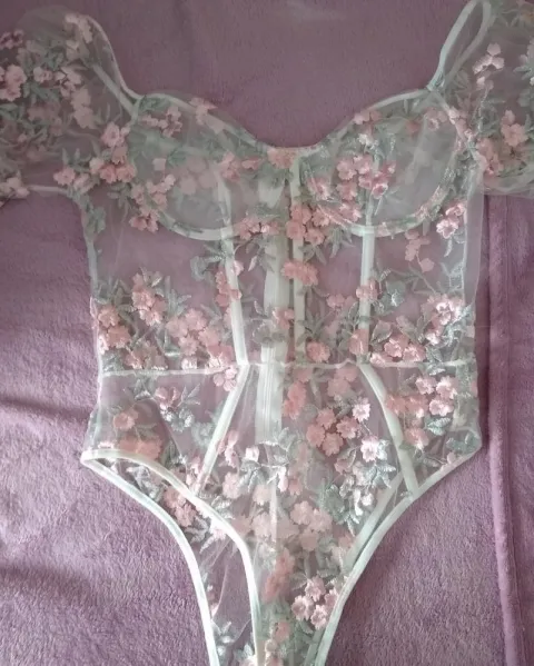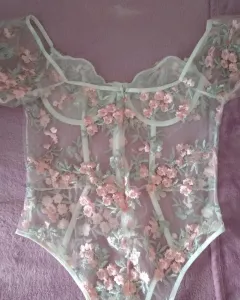 Body con detalles bordados✨. Hermoso Body con detalles bordados de flores color rosa. Está nuevo sin etiqueta. Muy sexy.