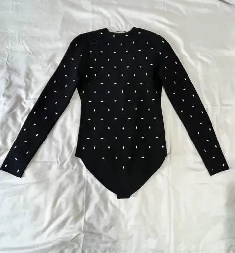 Body con estoperoles. Boddy color negro, con estoperoles, escote cuello V