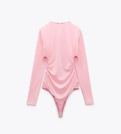 Hermoso body drapeado con aberturas en forma de corazón hermoso talla M confeccionado en tela tipo punto cuello redondo cierre en espalda oculto y broches en la entrepierna nuevo con etiqueta color rosa chicle