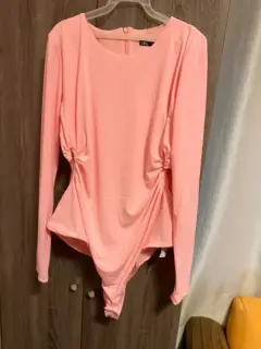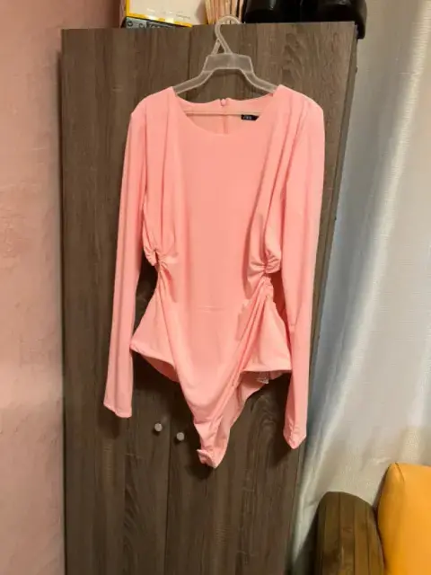 Hermoso body drapeado con aberturas en forma de corazón talla 30 confeccionado en tela tipo punto cuello redondo cierre en espalda oculto y broches en la entrepierna nuevo con etiqueta color rosa chicle