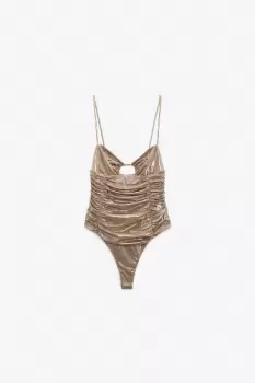 Body dorado drapeado. Hermoso body dorado, estrénalo y lúcelo con lo que quieras, está hermoso! Talla S viene en su talla.