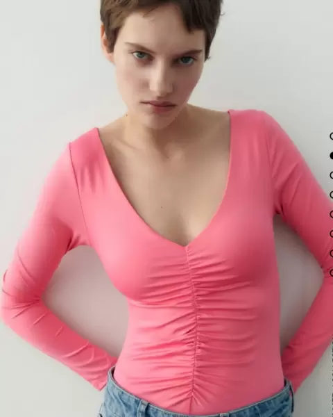 Hermoso body elástico color rosita con corrugado enfrente le da mucha vista, la tela es super fresca y tiene botones que facilita su uso 💯💯