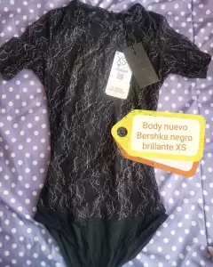 Body negro Bershka nuevo. Body negro de encaje talla xs totalmente NUEVO marca Bershka edición especial.Perfecto para un evento de noche, la tela como es tipo encaje transparenta un poco, entonces se debe usar con ropa interior negra 😎, luce perfecto!!