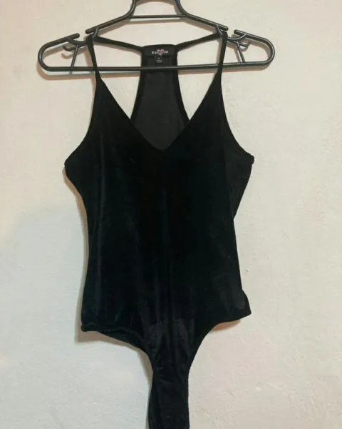 Body negro de gamusa. Body de gamusa con tirantes no ajustablesBroche en la parte de la entrepierna