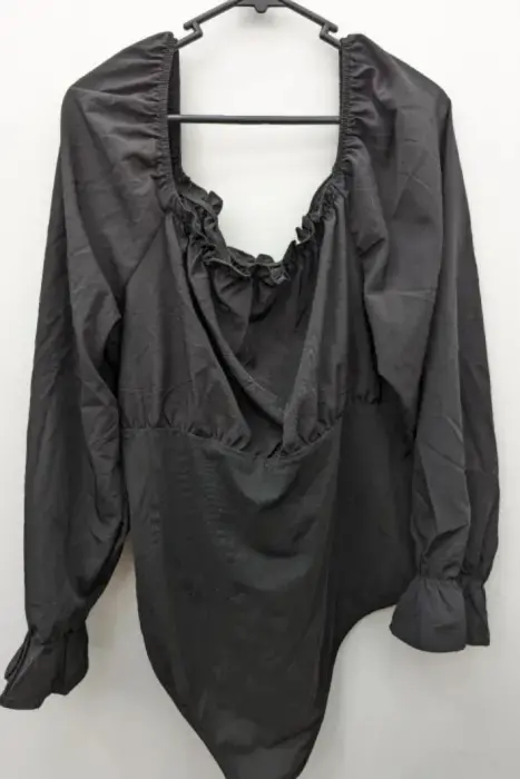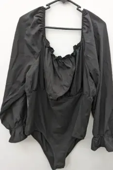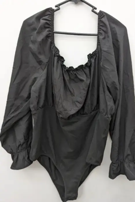 Este body negro de SHEIN redefine el concepto de básicos con su elegante escote y mangas abullonadas. Ideal para un look de noche, combínalo con una falda lápiz o pantalones de talle alto para un toque de glamour instantáneo.