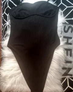 Body negro liso. Body negro liso con broche en la parte de abajo y forma en busto