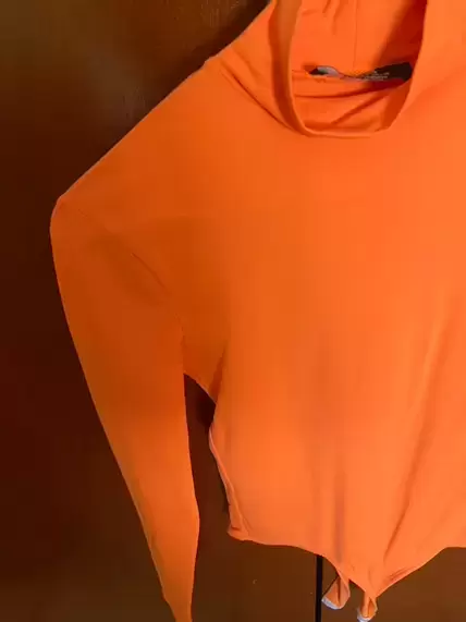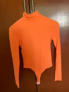 Body neon. Body naranja neon, manga larga, tela stretch, cuello alto, talla S
