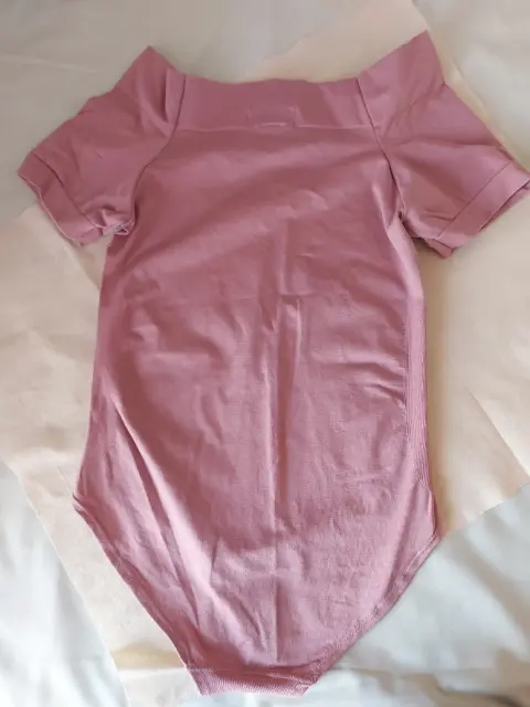 Body palo de rosa. Body elastico, color palo de rosa, manga corta, hombros descubiertos, en excelente estado