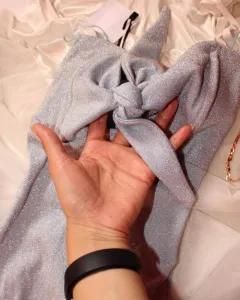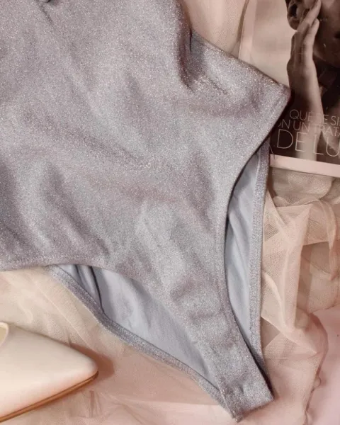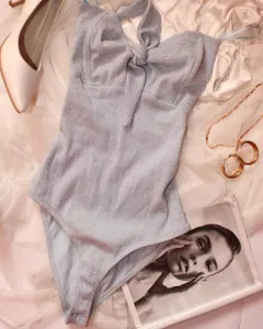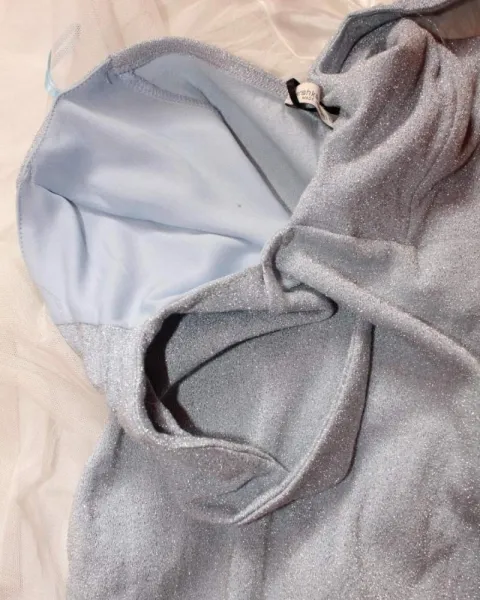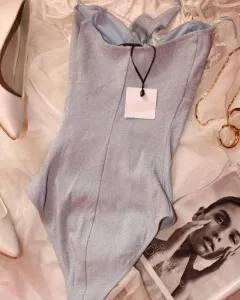 Bodysuit con glitters. Nuevo con etiqueta.Body strapless con nudo en el pecho color azul bebé con glitters y varillas en el pecho.
