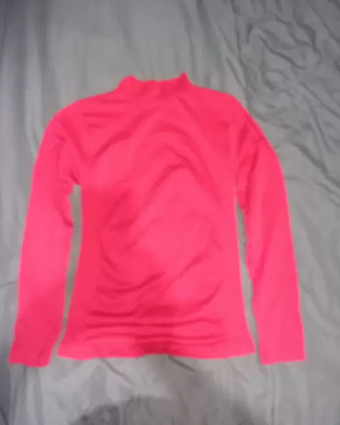 Bolsa roja. Blusa básica cuello alto, manga larga, de licra tipo faja, es lisa con líneas de la misma tela en los costados.