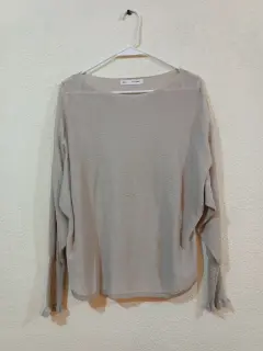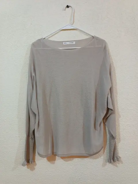 Blusa de punto, cuello redondo, manga larga, con detalle a la altura de la muñeca, color beige en perfectas condiciones
