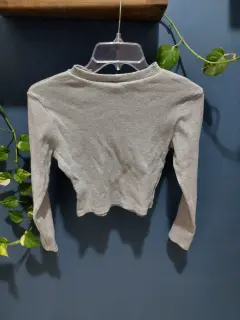 Bonita blusa juvenil, color gris, a la cintura, manga larga, excelentes condiciones
