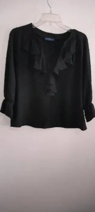 Blusa casual escote V,negra talla grande con bonitos detalles en cuello y mangas. Nueva, sin desperfectos.