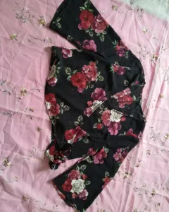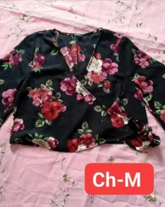 Bonita blusa con flores. Hermosa blusa con mangaNegra con estampado de floresTalla Ch-MNueva sin etiquetaNingún detalleEs tipo crop top. No es tan corta pero tampoco tan largaQueda super padre con un pantalón costillero