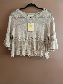 Bonita blusa con transparencias. Si te interesan varias prendas puedo hacer un paquete y dar mejor precio❗️Favor de checar bien las fotos y preguntar si tienen dudas. Muy bien cuidado.