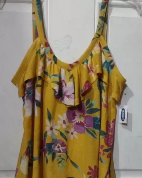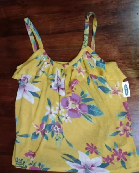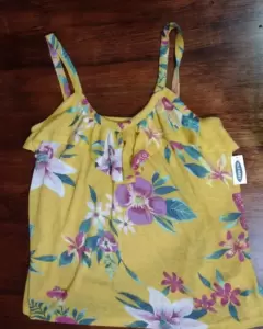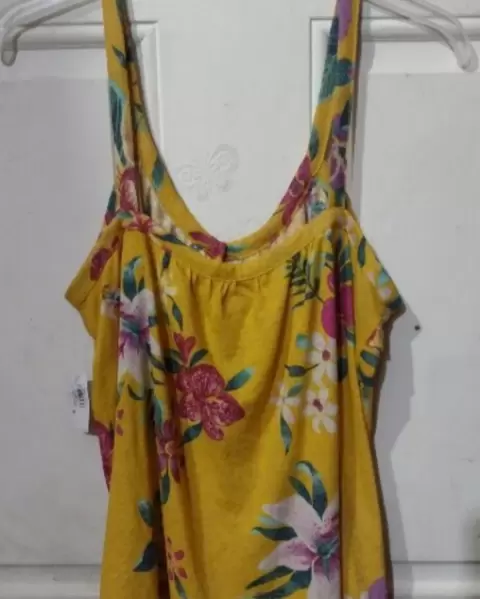 Bonita blusa de tirantes. Bonita y fresca blusa algodón con spandex color amarillo canario con prin floral , talla M y da en L x que estira 🤩
