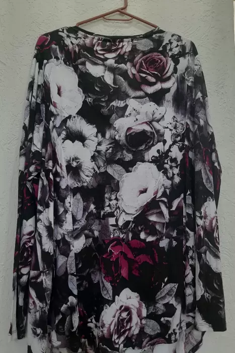 Bonita blusa floral Basica en tu guardaropa, es ligera en tonos morados y grises, es de la marca Simply Veratalla XL hecha en Filipinas muy comoda cuello V y manga larga es nueva sin etiqueta.