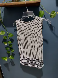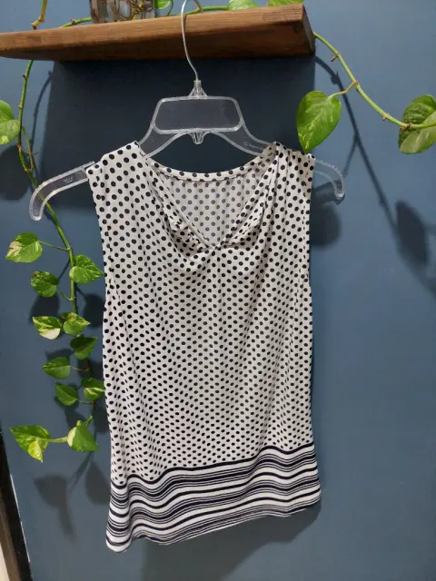 Bonita blusa sin mangas, muy fresca, con estampado de puntos azul marino, en excelentes condiciones