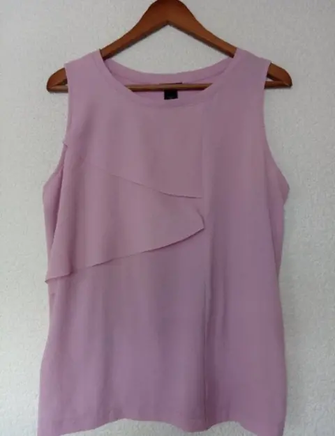 Bonita blusa sin mangas. Blusa color rosa sin mangas, con olanes, en perfecto estado, medidas de axila a axila 51 cm