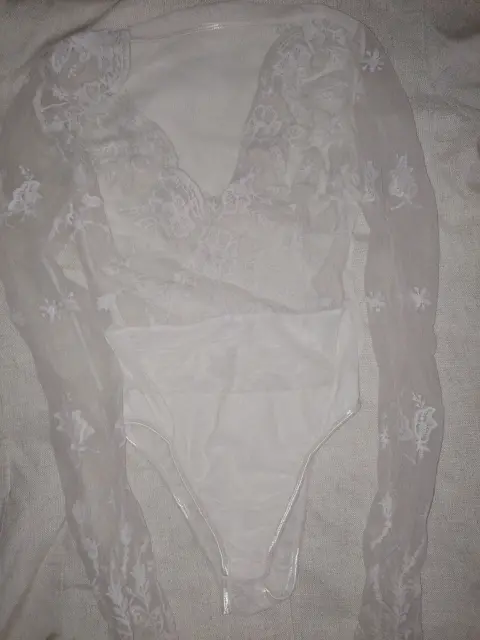 Bonito body. Body con transparencias y encaje de flores tele tipo malla blanco de manga larga