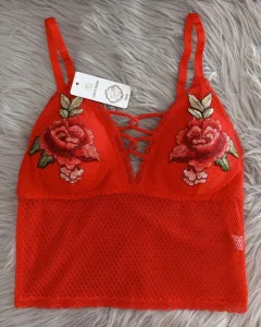 Bralette largo, de encaje, unitalla copas removibles abarca 30-36, CH/M. Se ajusta perfecto al cuerpo
