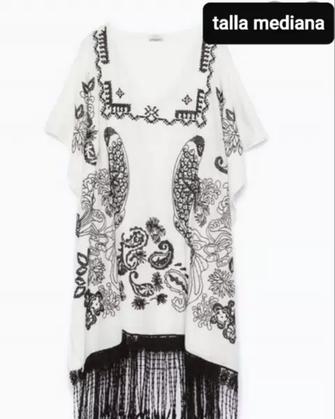 Caftán bordado Zara. Lindo caftán para que lo uses con versatilidad. Prenda original que queda super padre con jeans, short o hasta como salida de baño.Trae un estampado bordado y aberturas a los lados. No trae detalles, está en buen estado. Tela muy fresca: algodón