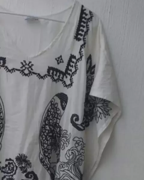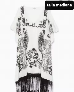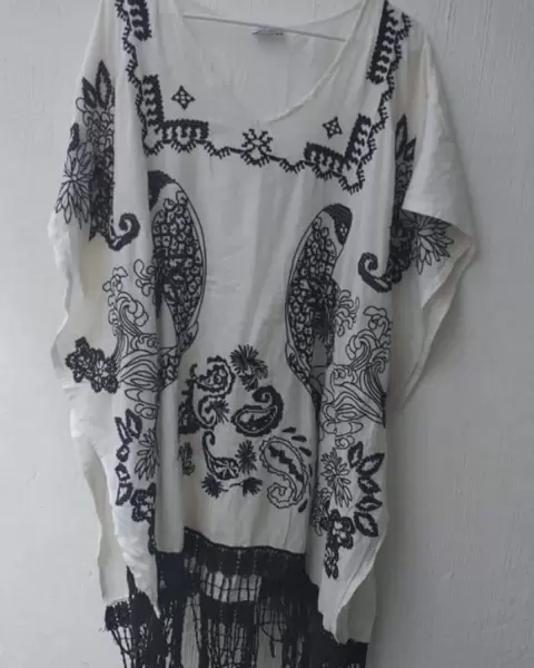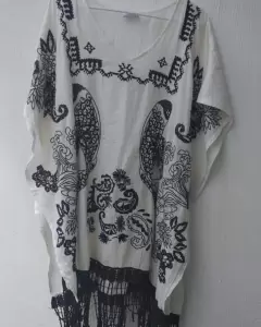 Lindo caftán para que lo uses con versatilidad. Prenda original que queda super padre con jeans, short o hasta como salida de baño.Trae un estampado bordado y aberturas a los lados. No trae detalles, está en buen estado. Tela muy fresca: algodón