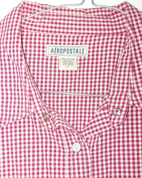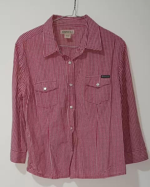 Camisa a cuadros Aéropostale. Blusa vaquera dama con adornos al frente de dos bolsas, corte dama con botones en mangas, que permite la puedas enrollar, o abotonada como tu desees lucirla,