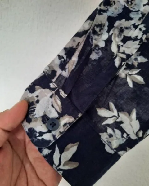 Talla 16, tela delgada fresca, azul marino con flores ,54 cm de axila a axila