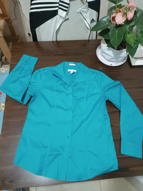Camisa de vestir. Blusa de vestir, formal americana, cuello, botones al frente y manga larga, tela tipo gabardina