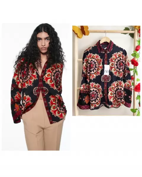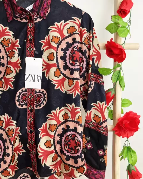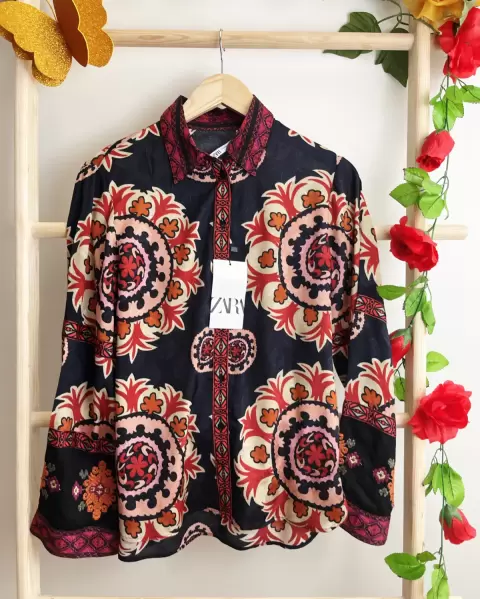 Camisa estampada Zara ! Talla Xs su corte es amplio puede quedar hasta M , actualmente en tienda , detalles bordados tela suave y fresca ! NUEVA CON ETIQUETAS .