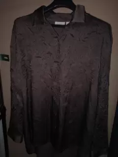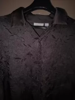 Camisola de vestir color gris. Camisola para dama en seda corrugada, color gris plata
