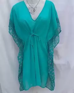 Camisón color turquesa. Bluson de gasa con jaretas en la cintura, color turquesa, talla xl.