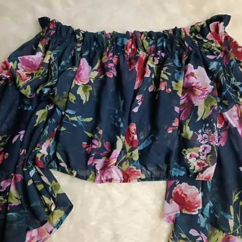 Campesina azul floreada. ¡Boho chic! Blusa campesina azulino floreada, talla M. ¡Comprala ya y suma un toque de campo a tu estilo! 🌼👗 Con resorte para ajuste