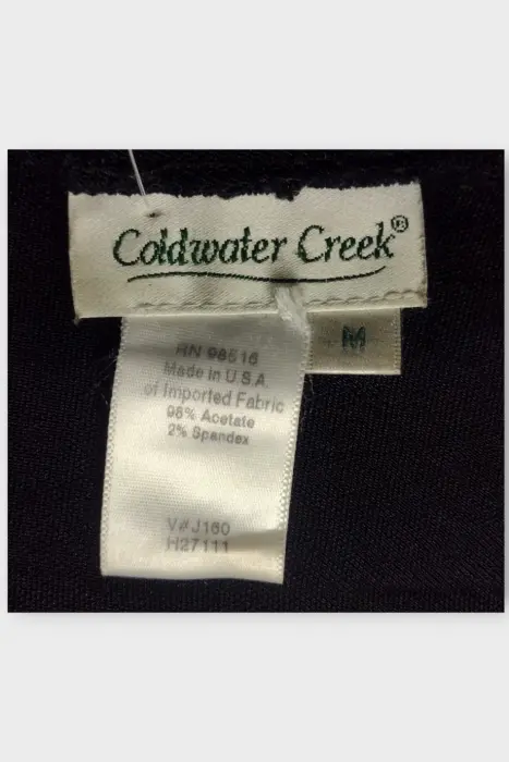 Coldwater Creek Blusa Dama Acetato Negro M. Coldwater Creek Blusa Dama Acetato Negro MBlusa marca Coldwater Creek 98% Acetato 2% SpandexMarca: Coldwater CreekOrigen: USAMaterial: 98% Acetato 2% SpandexTalla: MEstilo: CasualPatrón: LisoColor: NegroCierre: AbiertoPecho: 42Largo: 56Hombro: 39Manga: Sin MangasRopa de USO en muy buen estado
