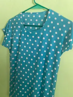 Dossssssss hermosas blusas en talla chica para andar en casa una color celeste con bolitas blancas y otra con tirantes y cuello en tipo V, con pedrería brillante de fantasía, súper frescas