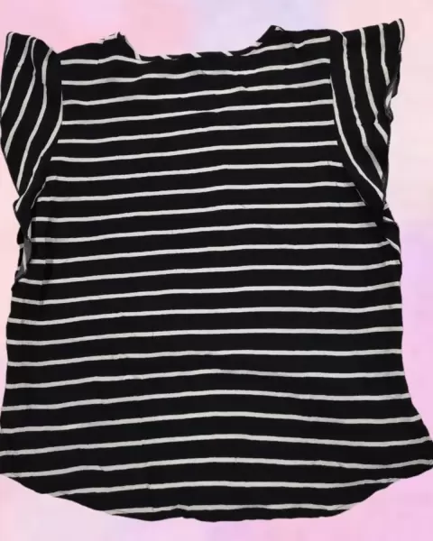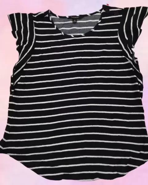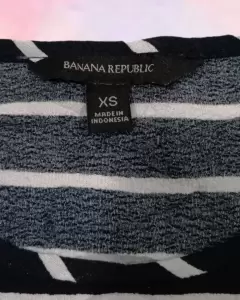Coqueta blusa Banana Republic. Coqueta blusa, azul marino con blanco. Detalle de botones en el hombro y manga tipo olan.
