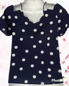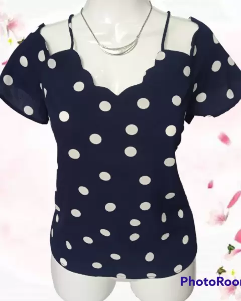 Coqueta blusa de lunares. Coqueta blusa de hombro descubierto y detalle de ondas al cuello.La tela estira un poco por lo que amolda muy bonito