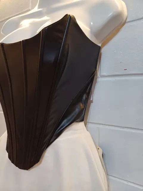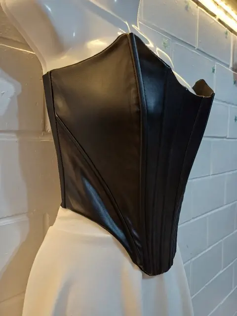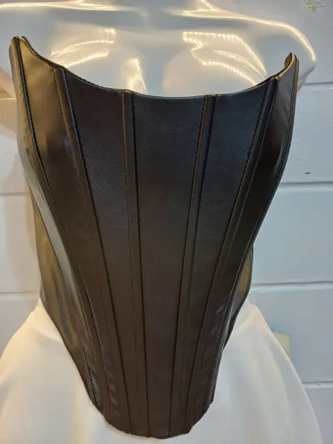 Corsé de piel en color negro, con varillas para dar figura, concierte en la parte de la espalda