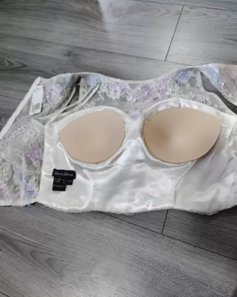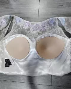 De encaje con sus copas integradas con flores bordadas, de ax-ax 42 cm, de largo 39 cm , marca DAVE & JONNY , nuevo sin etiqueta