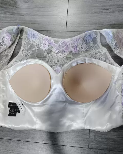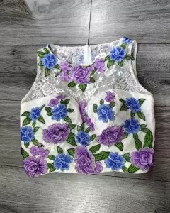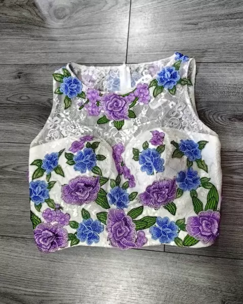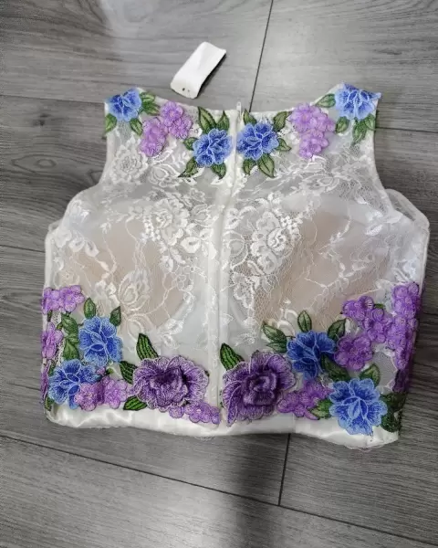 Creo top. De encaje con sus copas integradas con flores bordadas, de ax-ax 42 cm, de largo 39 cm , marca DAVE & JONNY , nuevo sin etiqueta