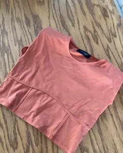 Blusa crop top color camote o ladrillo Mangas cortas con hombreras