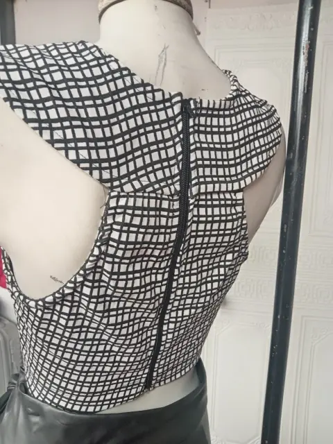 Crop Top. Hermoso CropTop de cuadros chicos en blanco y negro talla chicha