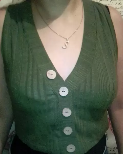 Crop top.. Crep top estilo chaleco con cuello en v botones de madera mangas gruesas .color verde helecho.