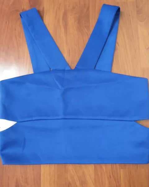 Lindo crop top azul rey, con aberturas en los costados, cierre en espalda, forro interior, talla M. Puesto una vez. En perfecto estado.