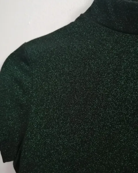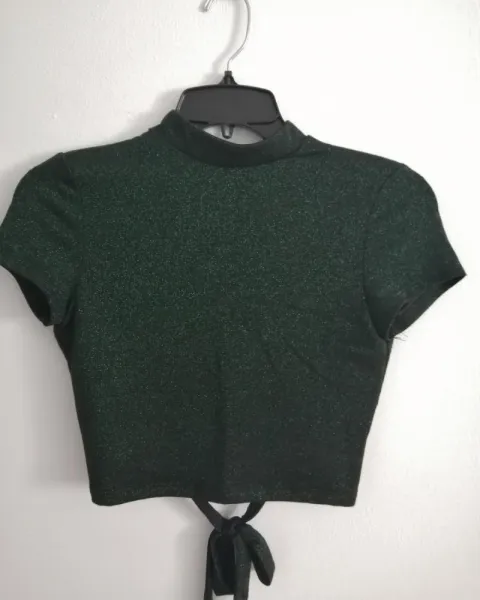 Crop top super padre y diferente, el escote de la espalda le da ese extra que lo hace super cool, además de que la tela es verde con unos toques de brillo!