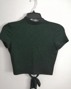 Crop top con escote en espalda. Crop top super padre y diferente, el escote de la espalda le da ese extra que lo hace super cool, además de que la tela es verde con unos toques de brillo!