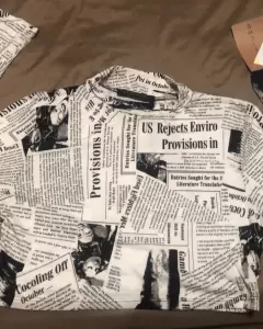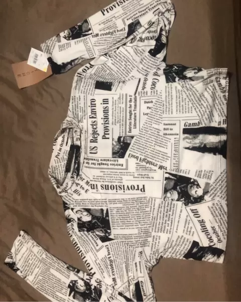 Crop top con estampado de periodico talla mediana.100% nueva y con etiqueta