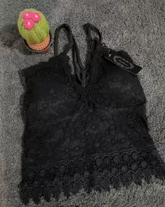 Crop top de encaje, con detalle cruzado en la parte frontal, tela stretch de excelente calidad