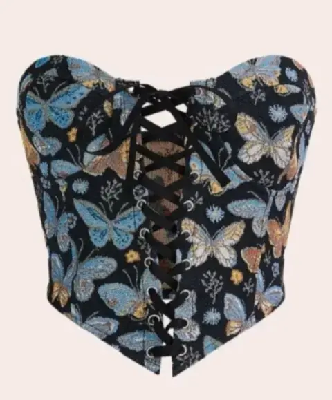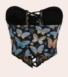 Crop top mariposas. Top de mariposas ajustable con el cordón delantero sin detalles, no es estampado de talla xs con medidas Largo:46.20 Pecho: 81 (medidas en cm)